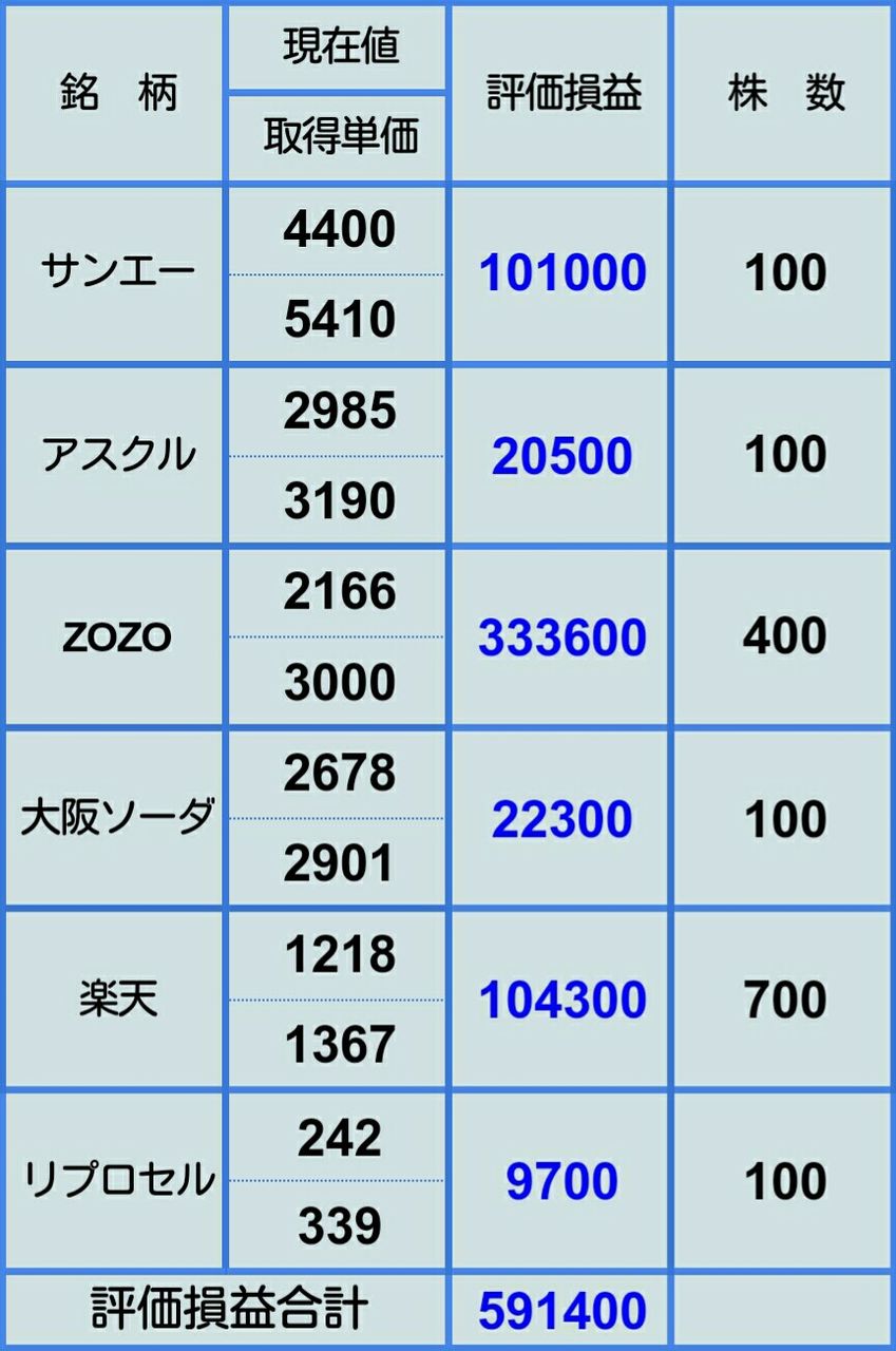 今のところポジションを減らすことができず、持ち株すべでGW中も保有し続けることになりそうです。