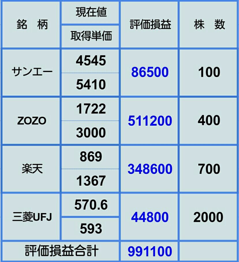 ZOZOのようになれば、評価損額100万円超えが常態化しそうです。
