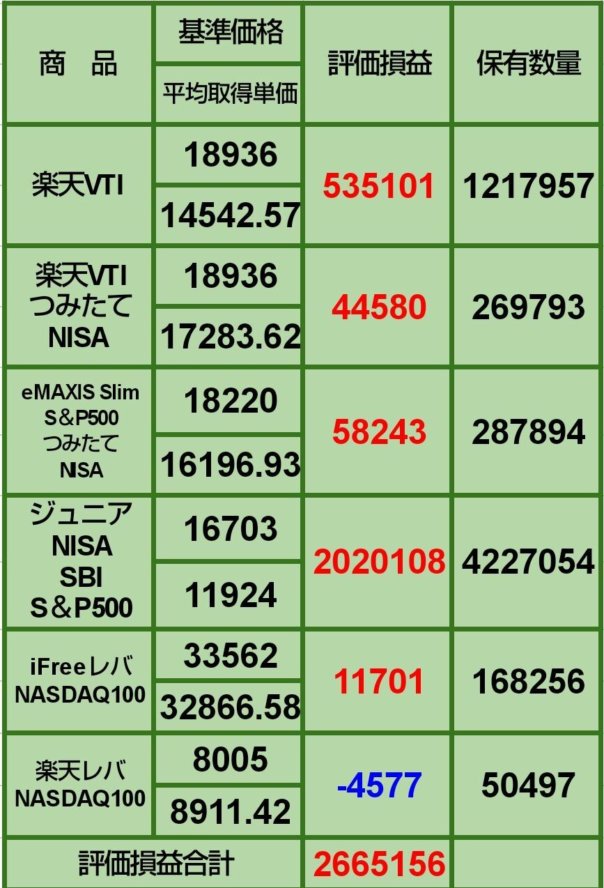 SBI・V・S&P500の評価損益と保有数量は子供2人分です。