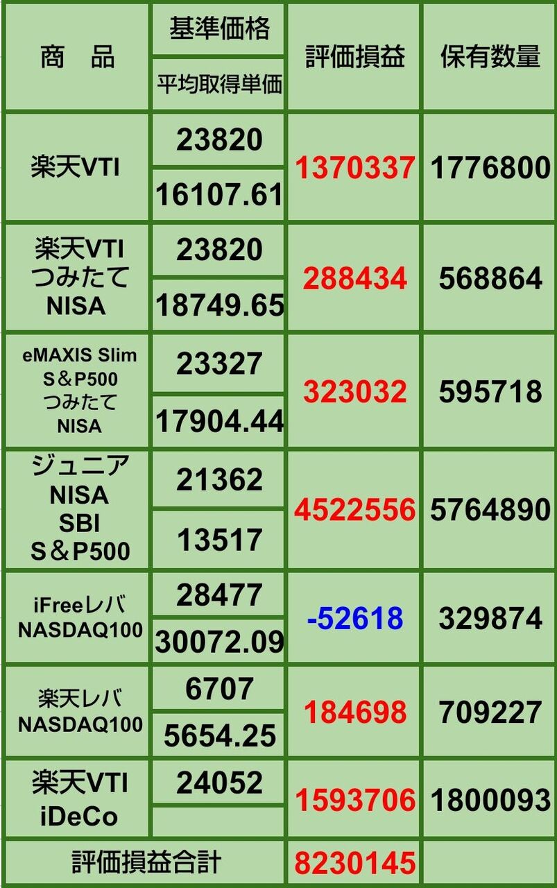 SBI・V・S&P500の評価損益と保有数量は子供2人分です。